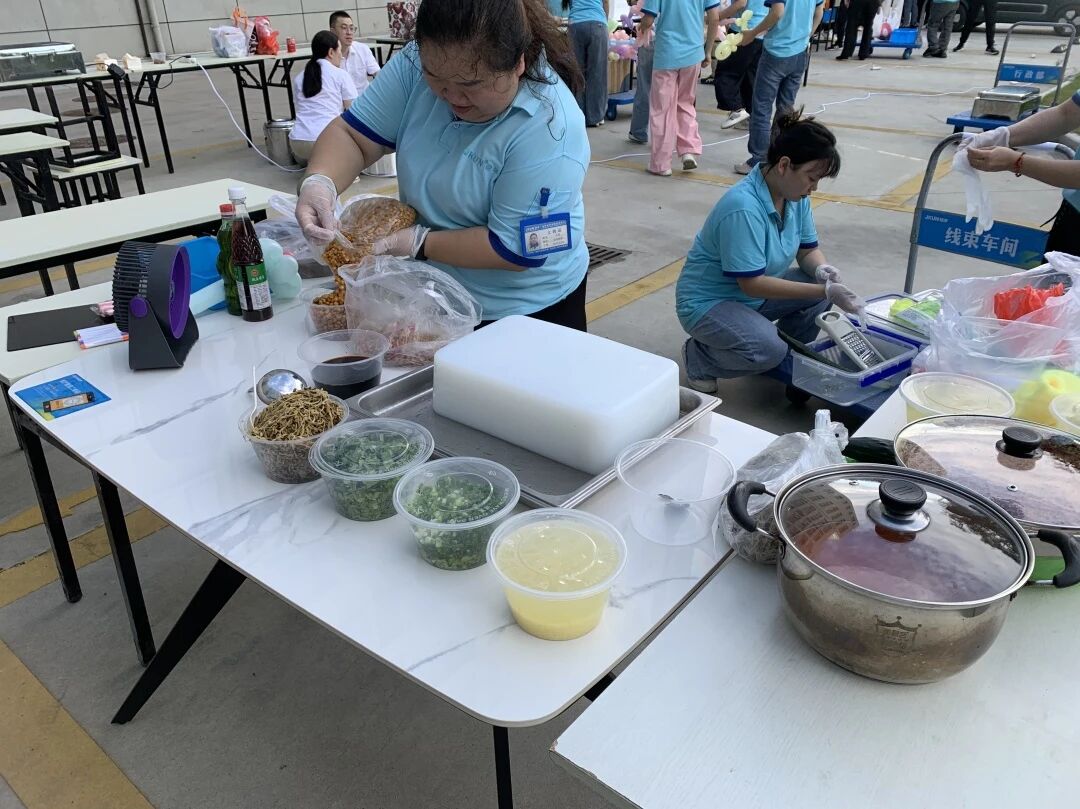 开幕致辞后,最受期待的 “美食市集” 正式开启!各部门精心筹备的美食摊位依次排开,香气四溢,让人目不暇接。大家穿梭在各个摊位前,或品尝美食,或交流烹饪心得,偶尔还会拿起手机记录下这热闹的瞬间。美食的香气与大家的笑声交织在一起,满是幸福的味道,也让 “互助分享” 的企业文化在不知不觉中传递。