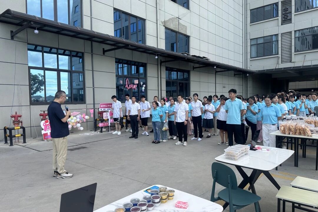 公司总经理邵总饱含深情的开幕致辞为活动拉开温暖序幕。 “七夕是象征爱与团圆的节日,而健坤就是我们共同的‘家’,希望大家能在今天的美食嘉年华里,卸下忙碌,享受美食,感受彼此陪伴的美好。”简单真挚的话语,瞬间拉近了心与心的距离,也为整场活动奠定了温馨、融洽的基调,让大家对接下来的环节充满期待。