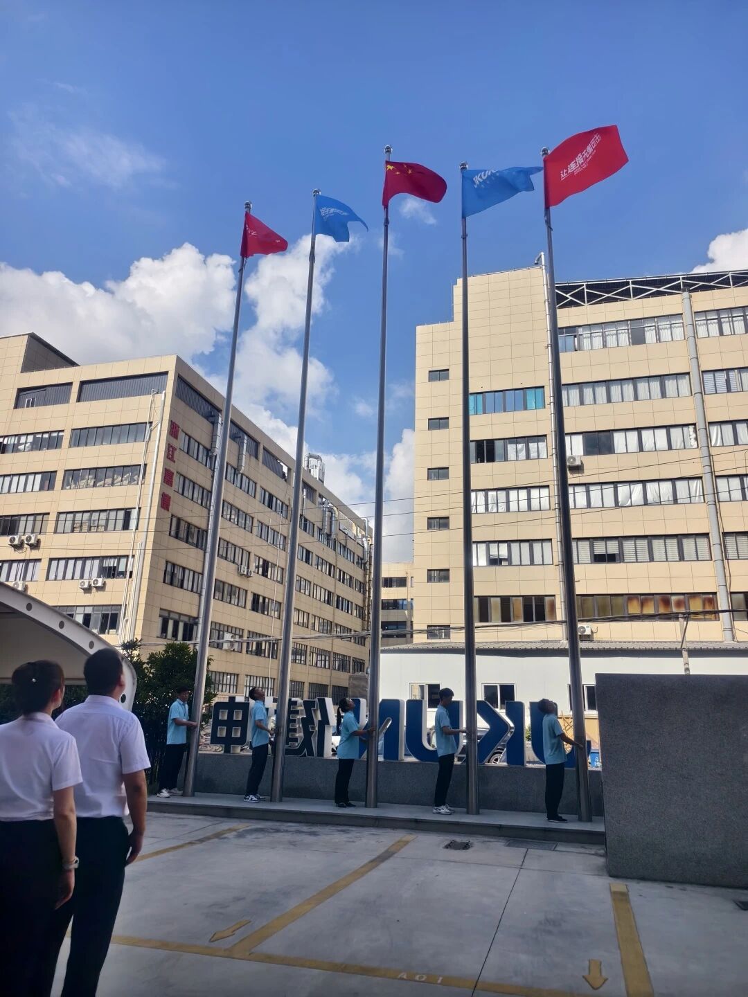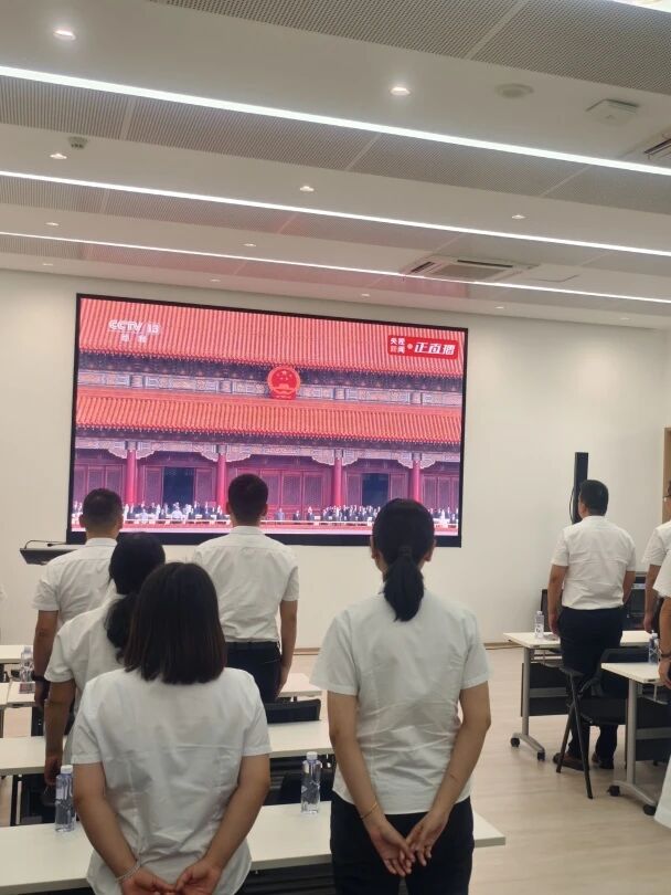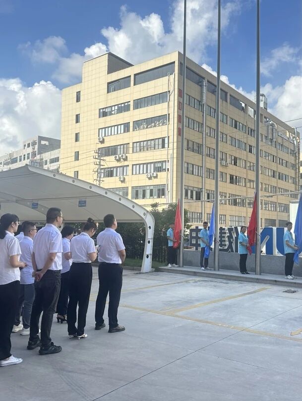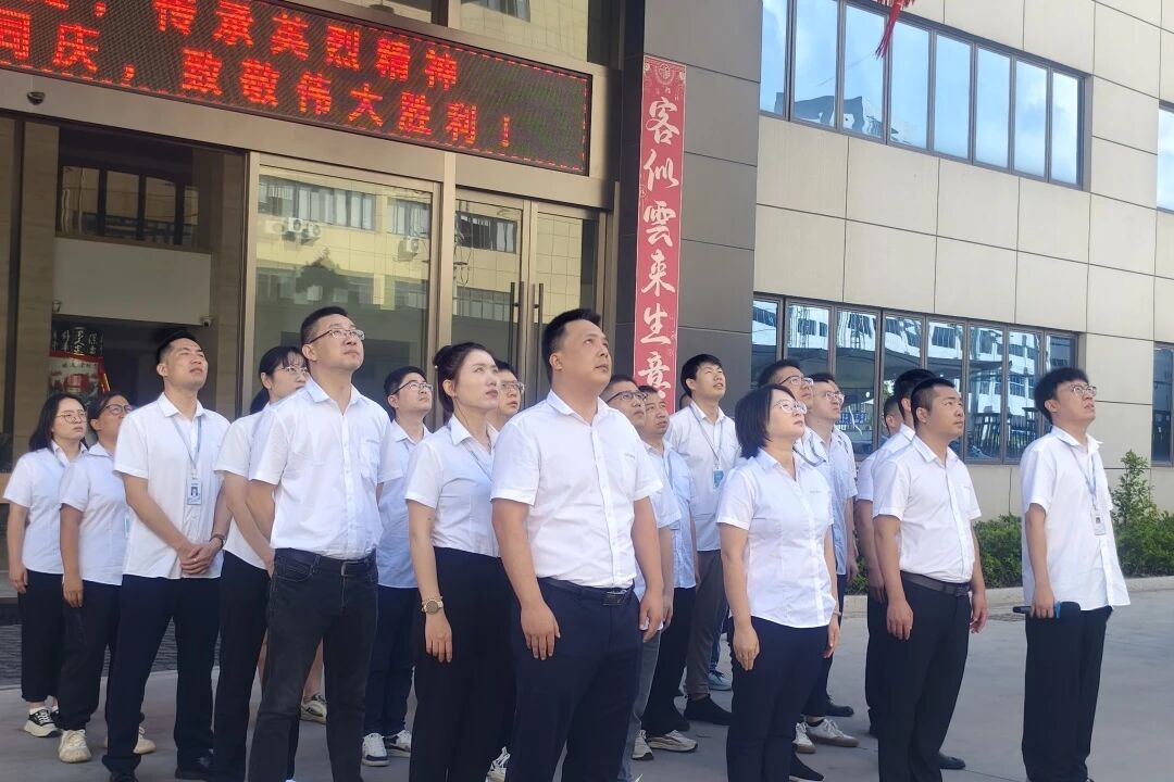 上午8时50分,公司员工整齐列队,举行升旗仪式。“全体肃立!行注目礼!”在庄严的《义勇军进行曲》中,鲜艳的五星红旗冉冉升起。现场全体员工齐声高唱国歌,赤诚的爱国情怀在歌声中激荡,表达对伟大祖国的无限热爱和崇高敬意。
