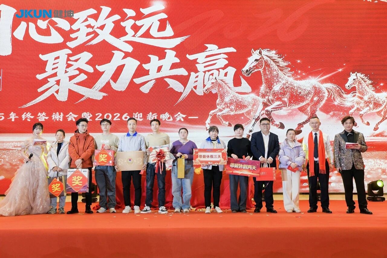 晚会伊始,总经理邵敬标先生登台发表年终总结及新年致辞。邵总简明回顾了 2025 年公司的发展历程:在复杂多变的市场环境中,全体健坤人同心协力、砥砺奋进,收获了亮眼成绩。他向每一位默默坚守、辛勤付出的家人致以诚挚感谢,同时寄语 2026 马年:“愿大家永葆初心、奋勇争先,以龙马精神共绘健坤新蓝图!” 简短有力的话语,凝聚了感恩与期许,赢得全场阵阵掌声。