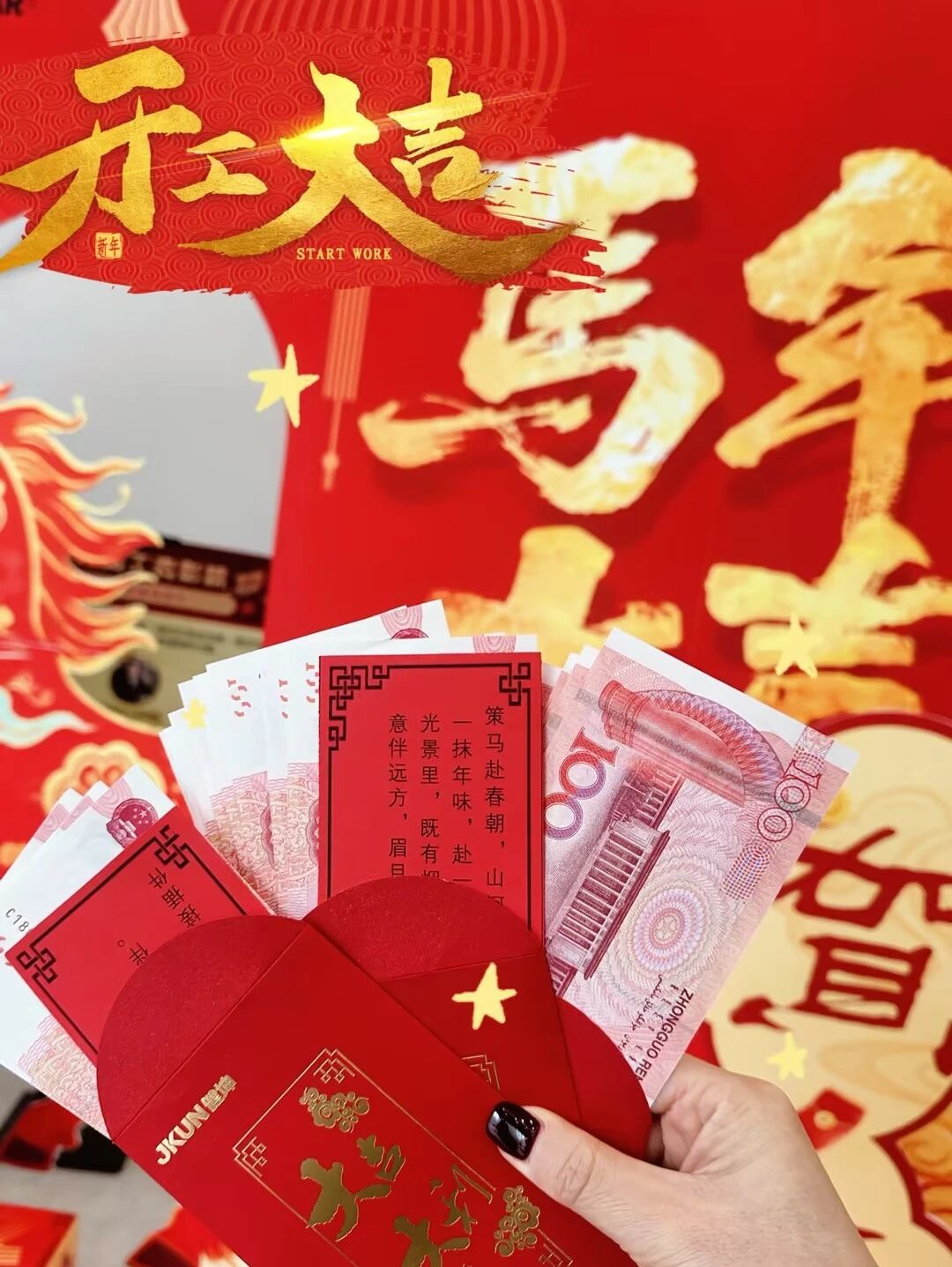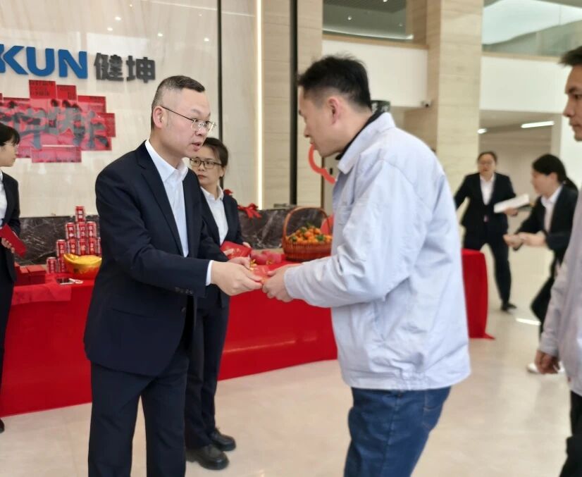 “开门红包”派发环节,邵总亲自将一个个寓意吉祥、饱含祝福的开工红包递到每一位员工手中。这不仅是公司对大家过去一年辛勤工作的肯定与感谢,更寄托了对新一年携手同行、共创辉煌的美好期许,祝愿每一位健坤人龙马精神,工作顺利,生活美满。