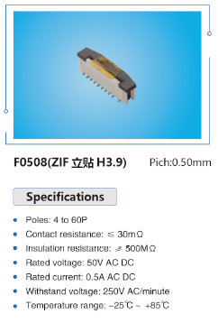 F0508AWVN 0.50mm 间距 FFC FPC连接器